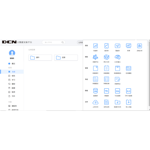 PA真人视讯数码大数据教学科研平台,集实训、数据分析、数据挖掘、科研为一体,以优质海量课程、项目案例资源、数据资源池为核心,旨在助力学校建设大数据专业实验室。